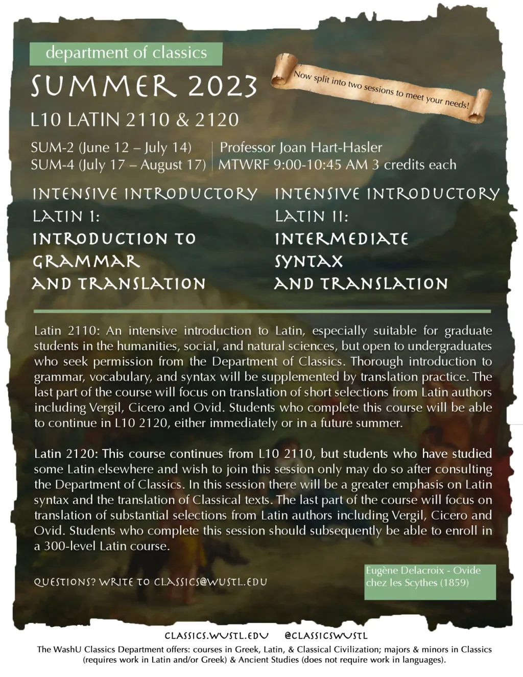 Start your study of Latin (or brush up on your foundation) at Wash U this summer