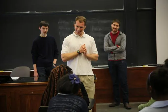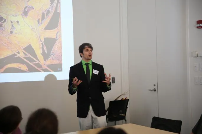 Washington University’s Classics Department, with the cooperation of the University’s Institute for School Partnership and the Kemper Art Museum, has shared insights on Greek and Roman mythology with two groups from local schools. On February 16th Assistant Professor Tom Keeline and undergraduate Classics majors Ethan Farber and Peter Satterthwaite presented for fifth graders of the Kipp Triumph Academy in St. Louis. On February 23rd Classics graduate students Phillip Caprara, Allison Ditmore, Jennifer Wiebe, and Constantine Karathanasis joined Ashley Ray of the Department of Art History and Archaeology in sharing myths of the Argonauts and Medea with seventh graders from Remington Traditional School in Maryland Heights, Missouri.