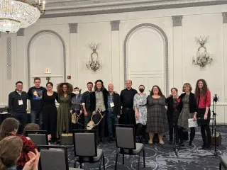 Featured in the photo, left to right: Young Kim, Joe Goodkin, Abigail Bradford, Vanessa Stovall, Bayla Kamens, Beau Henson, John Franklin, Chris Waldo, Jamie Levis, Jeannette Chien, Alex Seiler, Julia Irons, Anna Conser, Rachel Fickes